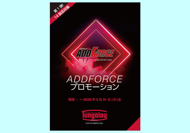 タンガロイは、2022年3月31日まで第一弾「ADDFORCEプロモーション」キャンペーンを実施する。対象製品は、先の14製品。