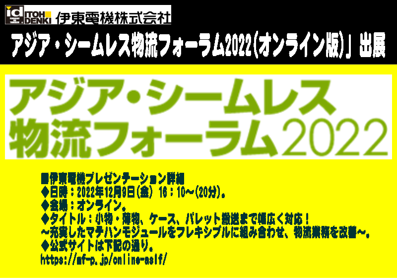 - ■2022.12.2 伊東電機 アジア・シームレス物流フォーラム2022(オンライン版)」出展